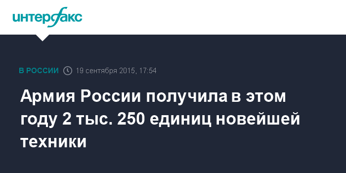 Москва. 19 сентября. INTERFAX.RU - С начала года в войска поступило 2 тыс. 250 единиц новейшей военной техники, заявил в субботу президент России Владимир Путин.