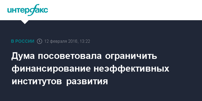 Дума посоветовала ограничить финансирование неэффективных институтов развития