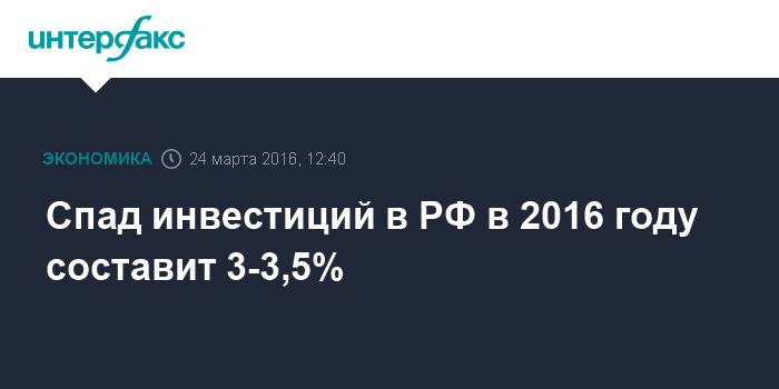 Спад инвестиций в РФ в 2016 году составит 3-3,5%