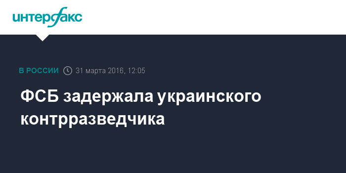 "26 марта на территории России задержан сотрудник департамента контрразведки центрального аппарата Службы безопасности Украины (СБУ) подполковник Юрий Иванченко. Он прибыл в Россию под предлогом посещения родственников, несмотря на то, что выезд на территорию России своим сотрудникам украинскими спецслужбами запрещен", - сообщили в четверг "Интерфаксу" в ЦОС ФСБ России.