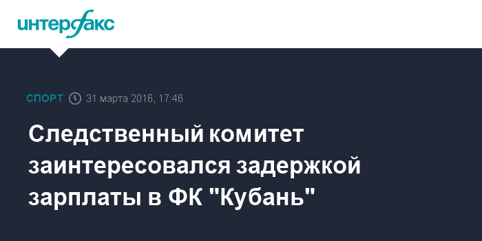 Следственный комитет заинтересовался задержкой зарплаты в ФК "Кубань"