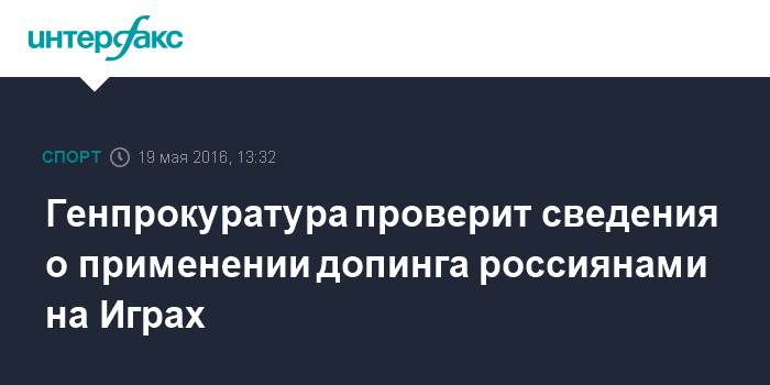 Москва. 19 мая. INTERFAX.RU - Генеральная прокуратура России начала проверку сведений СМИ о применении допинга российскими спортсменами на олимпиадах в Пекине, Лондоне и Сочи, сообщил "Интерфаксу" официальный представитель надзорного ведомства Александр Куренной.