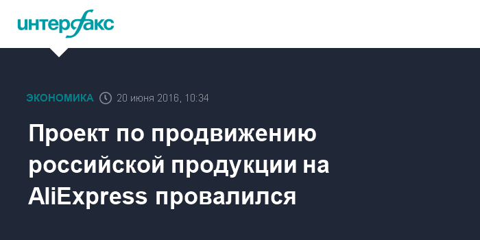 Москва. 20 июня. INTERFAX.RU -Пилотный проект Минпромторга по продвижению российской продукции на китайской интернет-площадке AliExpress провалился: за несколько месяцев на сайте было сделало всего 24 заказа отечественной продукции, пишет "Коммерсант".