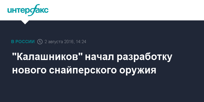 Москва. 2 августа. INTERFAX.RU - Концерн "Калашников" ведет разработки нового снайперского оружия, говорится в годовом отчете госкорпорации "Ростех".