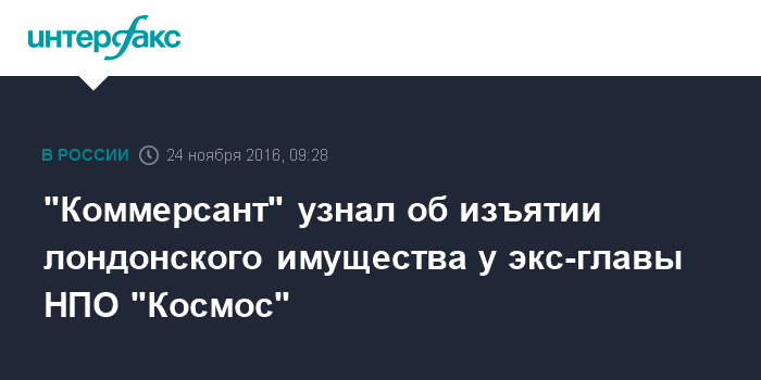 "Коммерсант" узнал об изъятии лондонского имущества у экс-главы НПО "Космос"