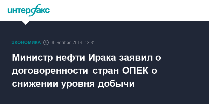 Министр нефти Ирака заявил о договоренности стран ОПЕК о снижении уровня добычи