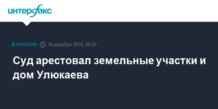 "Постановлением Басманного районного суда Москвы был наложен арест на 10 земельных участков и жилой дом Улюкаева в качестве обеспечительной меры. Все имущество находится в Смоленской области", - сообщила "Интерфаксу" пресс-секретарь суда Юнона Царева.
