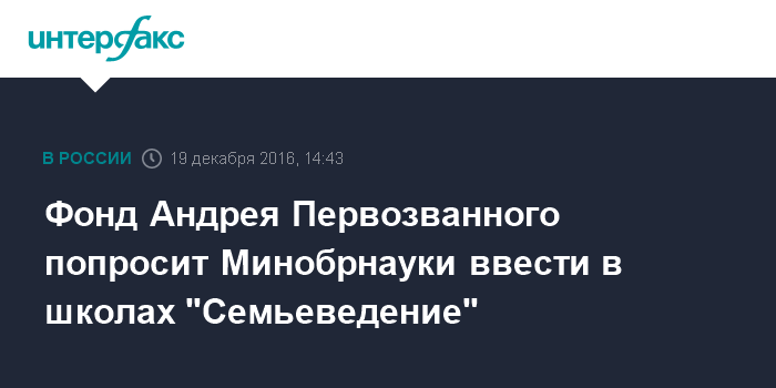 Фонд Андрея Первозванного попросит Минобрнауки ввести в школах "Семьеведение"