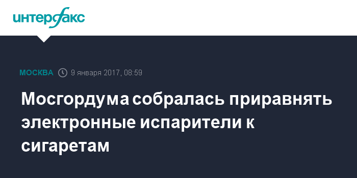 Москва. 9 января. INTERFAX.RU - Мосгордума планирует разработать и внести в Госдуму законопроект, регулирующий продажи и использование вейпов (электронных испарителей), пишет газета "Коммерсант". Поправки призваны приравнять вейпы к сигаретам.