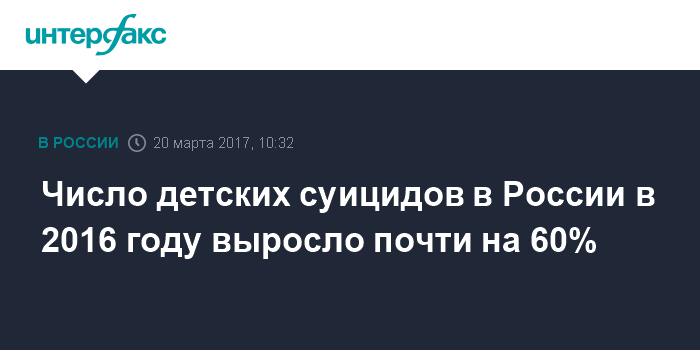 Число детских суицидов в России в 2016 году выросло почти на 60%