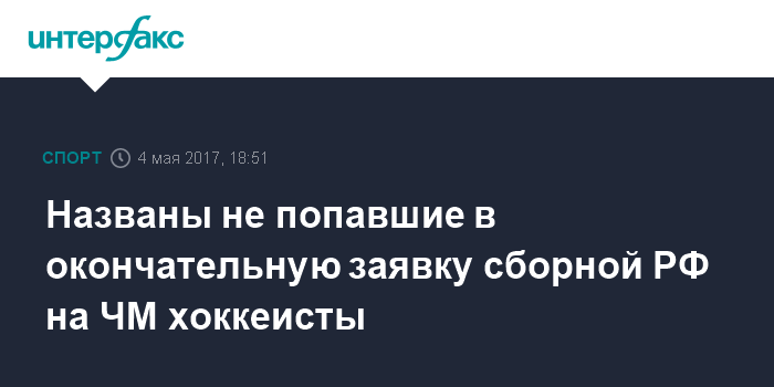 Москва. 4 мая. INTERFAX.RU - Нападающие Андрей Светлаков и Кирилл Капризов, а также защитник Алексей Береглазов не вошли в окончательную заявку сборной России на чемпионат мира по хоккею 2017 года, заявил тренер сборной России Игорь Никитин.
