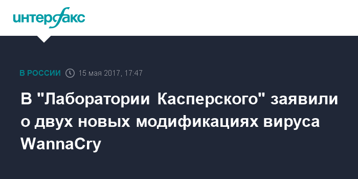 Москва. 15 мая. INTERFAX.RU - Две новые модификации вируса-вымогателя WannaCry появились за выходные, сообщили "Интерфаксу" в понедельник в пресс-службе IT-компании "Лаборатория Касперского".