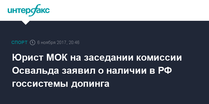 Юрист МОК на заседании комиссии Освальда заявил о наличии в РФ госсистемы допинга