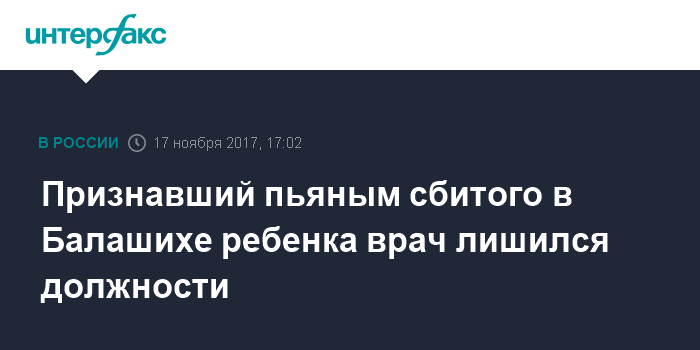 Признавший пьяным сбитого в Балашихе ребенка врач лишился должности
