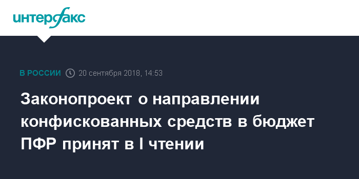 Законопроект о направлении конфискованных средств в бюджет ПФР принят в I чтении