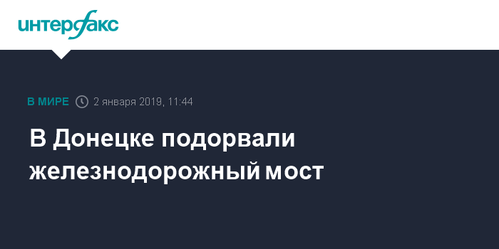 "1 января 2019 года в Пролетарском районе г. Донецка, на перегоне Чумаково-Ларино, 27 км, неизвестными лицами был произведен подрыв центральной железобетонной опоры железнодорожного моста через объездную автомобильную дорогу Славянск-Донецк-Мариуполь",- сказано в тексте сообщения.