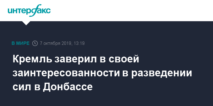 Кремль заверил в своей заинтересованности в разведении сил в Донбассе