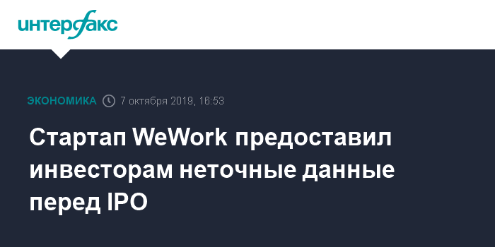 Москва. 7 октября. INTERFAX.RU - Коворкинговый стартап WeWork, планируя первичное размещение акций, сообщил инвесторам неточные данные о своей работе, пишет The Wall Street Journal. Издание считает, что это обстоятельство может еще сильнее подорвать доверие инвесторов к компании.