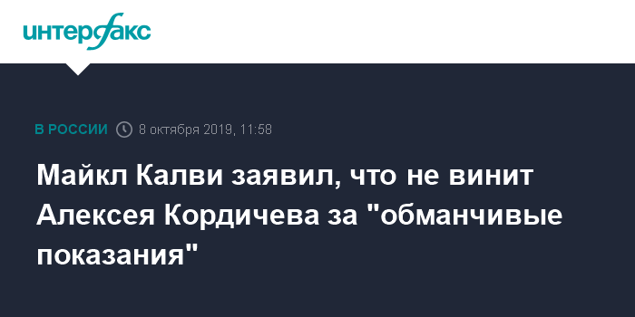 Майкл Калви заявил, что не винит Алексея Кордичева за "обманчивые показания"