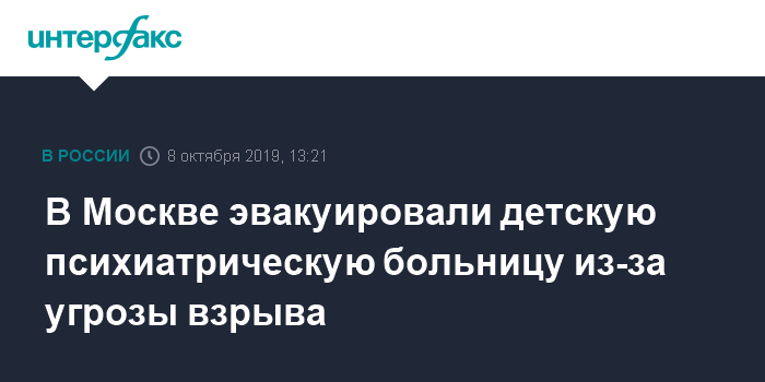 В Москве эвакуировали детскую психиатрическую больницу из-за угрозы взрыва