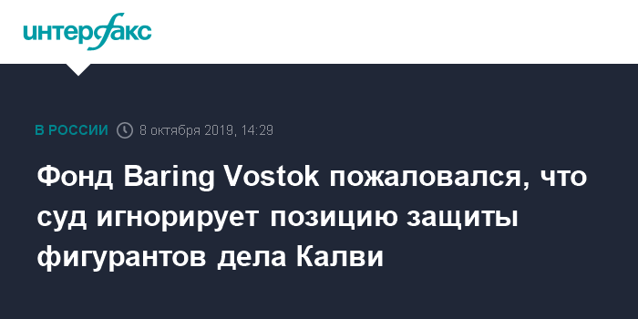 Фонд Baring Vostok пожаловался, что суд игнорирует позицию защиты фигурантов дела Калви
