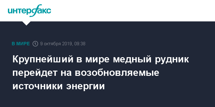 Крупнейший в мире медный рудник перейдет на возобновляемые источники энергии