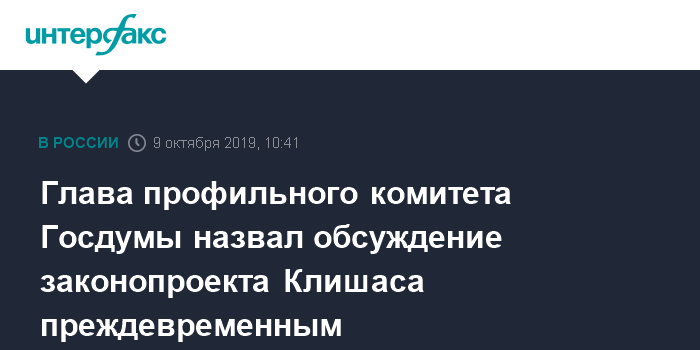 Глава профильного комитета Госдумы назвал обсуждение законопроекта Клишаса преждевременным