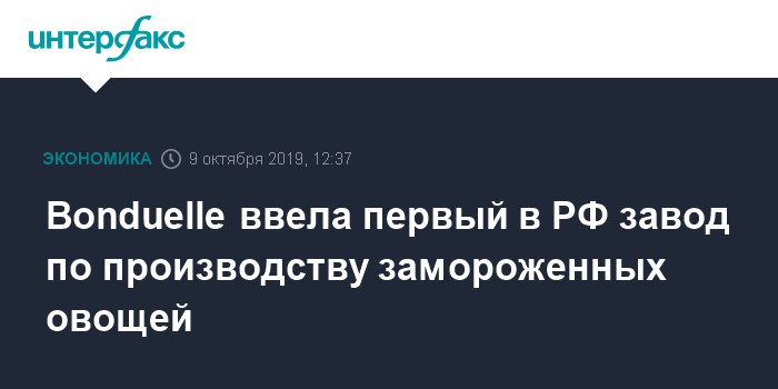 Москва. 9 октября. INTERFAX.RU - ООО "Бондюэль-Белгород" (входит в группу Bonduelle) запустило первый завод по производству замороженной продукции в Шебекинском районе Белгородской области, сообщили "Интерфаксу" в пресс-службе компании в среду.