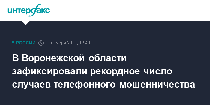 Москва. 9 октября. INTERFAX.RU - Полиция зарегистрировала за прошедшие сутки 12 сообщений о фактах телефонного мошенничества в отношении жителей Воронежской области, сообщает ГУ МВД по региону.