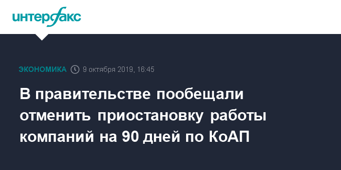 В правительстве пообещали отменить приостановку работы компаний на 90 дней по КоАП
