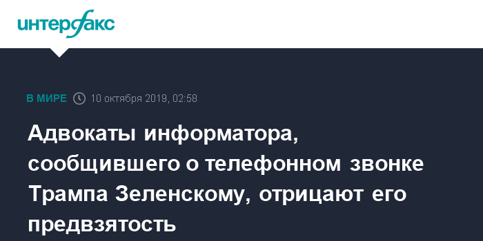 Адвокаты информатора, сообщившего о телефонном звонке Трампа Зеленскому, отрицают его предвзятость