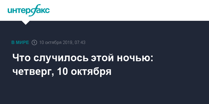 Москва. 10 октября. INTERFAX.RU - Краткая сводка событий, произошедших к утру: