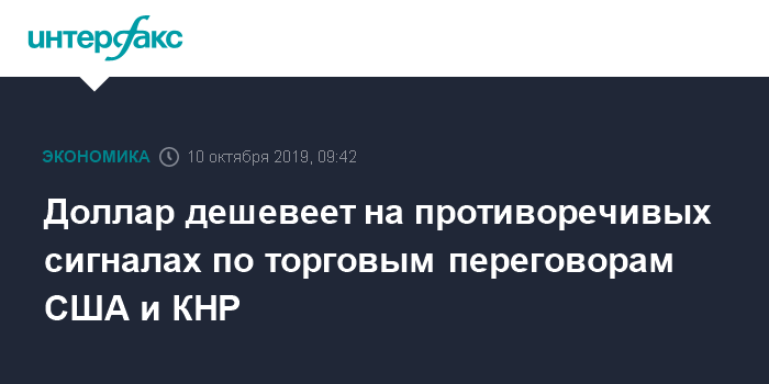 Доллар дешевеет на противоречивых сигналах по торговым переговорам США и КНР