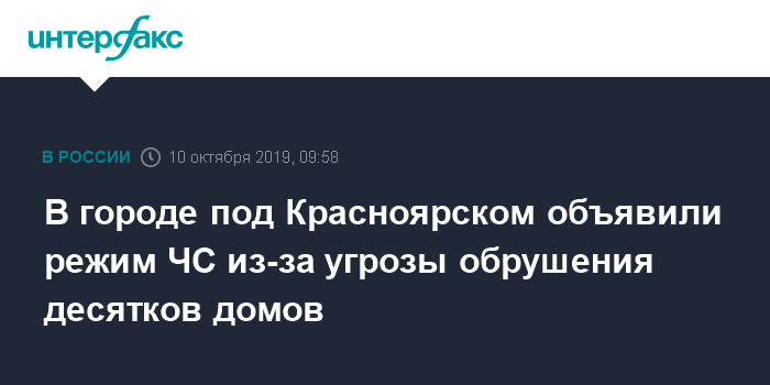 В городе под Красноярском объявили режим ЧС из-за угрозы обрушения десятков домов