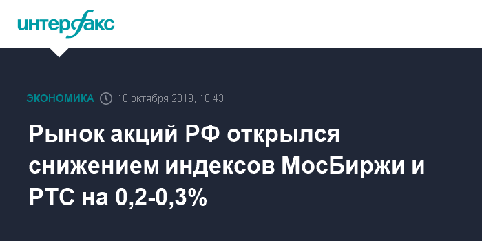 Рынок акций РФ открылся снижением индексов МосБиржи и РТС на 0,2-0,3%