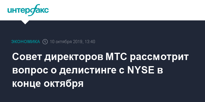 Совет директоров МТС рассмотрит вопрос о делистинге с NYSE в конце октября