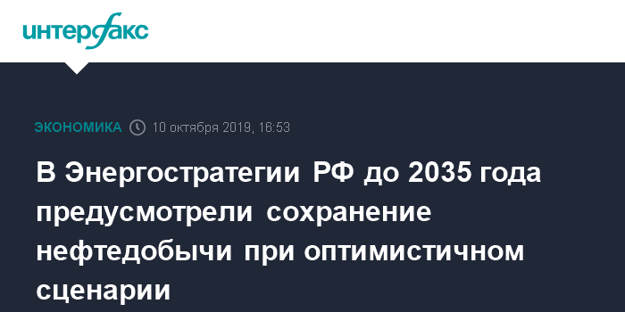 Москва. 10 октября. INTERFAX.RU - Энергетическая стратегия России на период до 2035 года предполагает в оптимистичном сценарии сохранение ежегодной добычи нефти в 550-555 млн тонн, в консервативном сценарии - постепенное падение до 490 млн тонн, говорится в проекте документа, с которым ознакомился "Интерфакс".