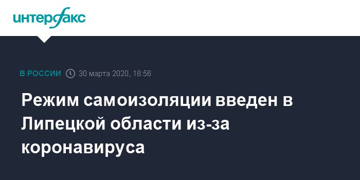 Режим самоизоляции введен в Липецкой области из-за коронавируса