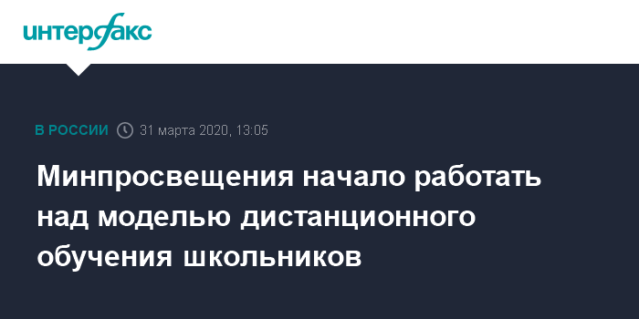 Москва. 31 марта. INTERFAX.RU - В России готовится модель обучения школьников на дому в дистанционном формате, сообщил во вторник глава Минпросвещения Сергей Кравцов.