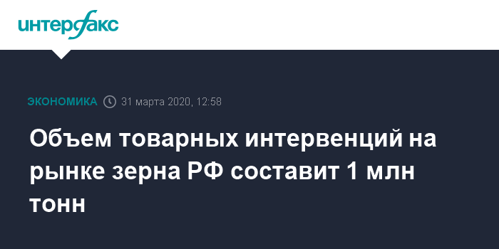Объем товарных интервенций на рынке зерна РФ составит 1 млн тонн