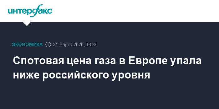 Москва. 31 марта. INTERFAX.RU - Спотовые цены на газ в Европе под давлением рекордных остатков газа в подземных хранилищах после очень мягкой зимы и растущих поставок сжиженного природного газа (СПГ) упали до уровня внутрироссийских цен.