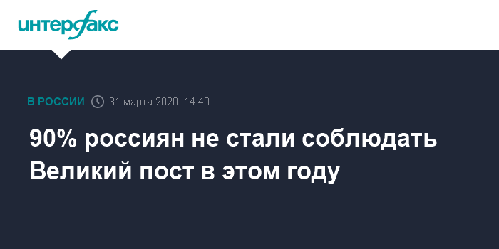 Согласно опросу, 90% россиян в этом году не соблюдают Великий Пост, среди православных сограждан эта доля составляет 88%.