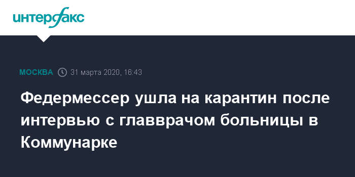 На днях Федермессер взяла интервью у главврача больницы в Коммунарке Дениса Проценко. Во вторник стало известно, что у него был диагностирован коронавирус.