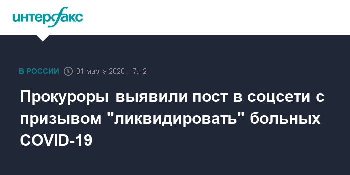 Прокуроры выявили пост в соцсети с призывом "ликвидировать" больных COVID-19