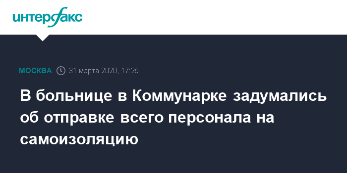 Москва. 31 марта. INTERFAX.RU - В больнице в Коммунарке, где коронавирусом заразился главный врач Денис Проценко, решается вопрос о самоизоляции или тестировании медперсонала, который контактировал с главврачом, сообщили в эфире телеканала "Россия 24" (ВГТРК).