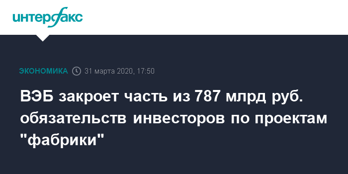 ВЭБ закроет часть из 787 млрд руб. обязательств инвесторов по проектам "фабрики"