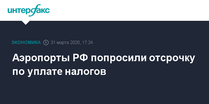 Москва. 31 марта. INTERFAX.RU - Международная ассоциация аэропортов (МАА) просит Минтранс РФ распространить на аэропорты отсрочку по уплате налогов, предусмотренную для организаций малого и среднего предпринимательства.