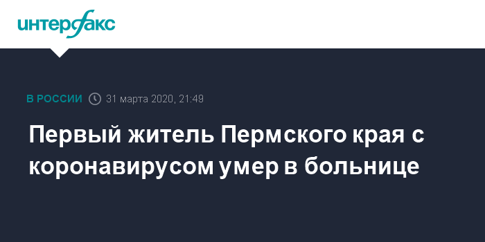 Это первая смерть пациента с коронавирусом в Пермском крае.