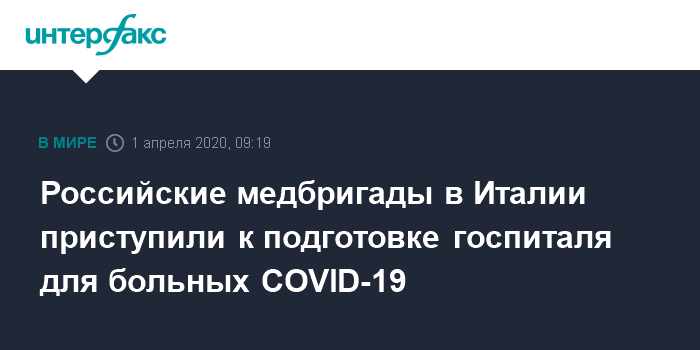 Москва. 1 апреля. INTERFAX.RU - Российские врачебно-сестринские бригады совместно с итальянскими коллегами приступили к оборудованию отделений интенсивной терапии в госпитале, созданном в Бергамо для лечения заразившихся коронавирусной инфекцией, сообщили в Минобороны РФ.