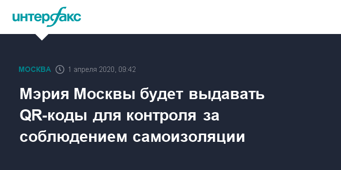 Мэрия Москвы будет выдавать QR-коды для контроля за соблюдением самоизоляции